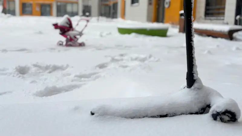 По прогнозу РГП " Казгидромет " в Астане снег будет идти до самого вечера. За то короткое время, что он идёт, дворы уже успели погрязнуть в сугробах.