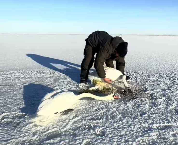А дело было так. Бауыржан с отцом Жылкыбаем ЖАКУПОВЫМ отправился за солью для коров. На обратном пути, проезжая мимо озера, мужчины заметили лебедя. Это было странно, поскольку уже вечерело и стоял крепкий мороз. Решили подойти поближе, чтобы снять на видео птицу. Тогда и стало понятно, что лебедь не может взлететь, у него просто не хватает сил. Но и в руки он не давался.
