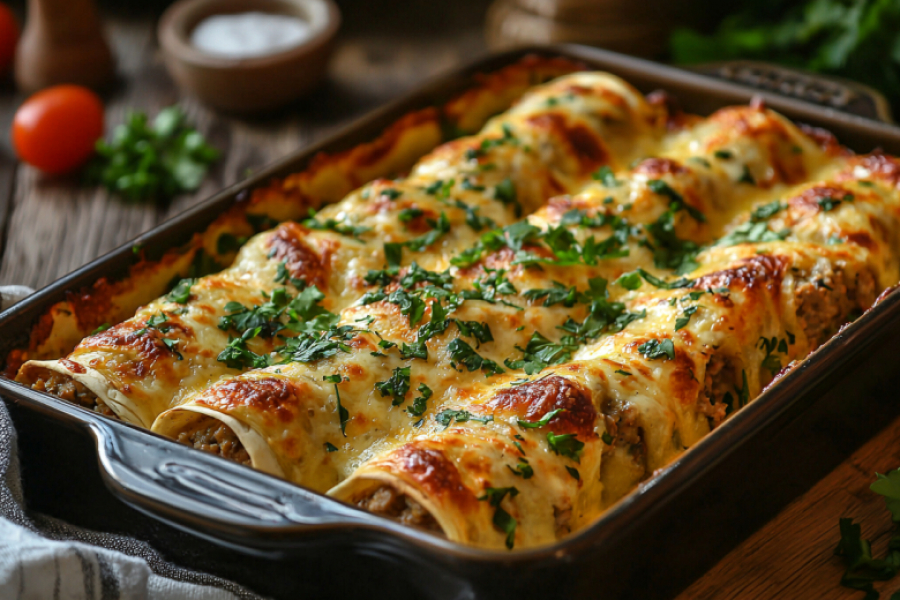 Фарш заранее подготавливаю: смешиваю с мелко нарезанным луком, солью и перцем. Лаваш раскладываю на рабочей поверхности. Равномерно распределяю фарш тонким слоем по всей поверхности лаваша — важно не делать слой слишком толстым, иначе не свернется. Аккуратно сворачиваю лаваш в плотный рулет. Нарезаю рулет на кусочки толщиной 3-4 см. Форму для запекания смазываю растительным маслом. Выкладываю рулетики срезом вверх, слегка прижимаю их друг к другу. В миске взбиваю яйца с кефиром, солью и перцем. Заливаю этой смесью рулетики, чтобы она покрыла их примерно наполовину. Выпекаю в разогретой до 190°C духовке 25-30 минут. Затем посыпаю тертым сыром и возвращаю в духовку ещё на 10 минут до золотистой корочки. Подаю горячими, посыпав свежей зеленью.