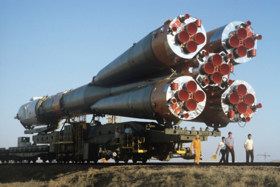 Космодром Байконур. Транспортировка ракеты-носителя с космическим кораблем «Союз Т-6» на стартовый стол Вторая половина XX века прошла под знаком величайшего противостояния двух сверхдержав, которое выплеснулось далеко за пределы земной атмосферы. Это была не просто битва за технологии, а столкновение идеологий. Каждое новое достижение тогда трактовалось как доказательство превосходства государственного строя. На заре эпохи казалось, что советская наука и промышленность обладают недосягаемой форой. Действительно, космическая гонка СССР и США началась с триумфа советского государства: первого искусственного спутника Земли.