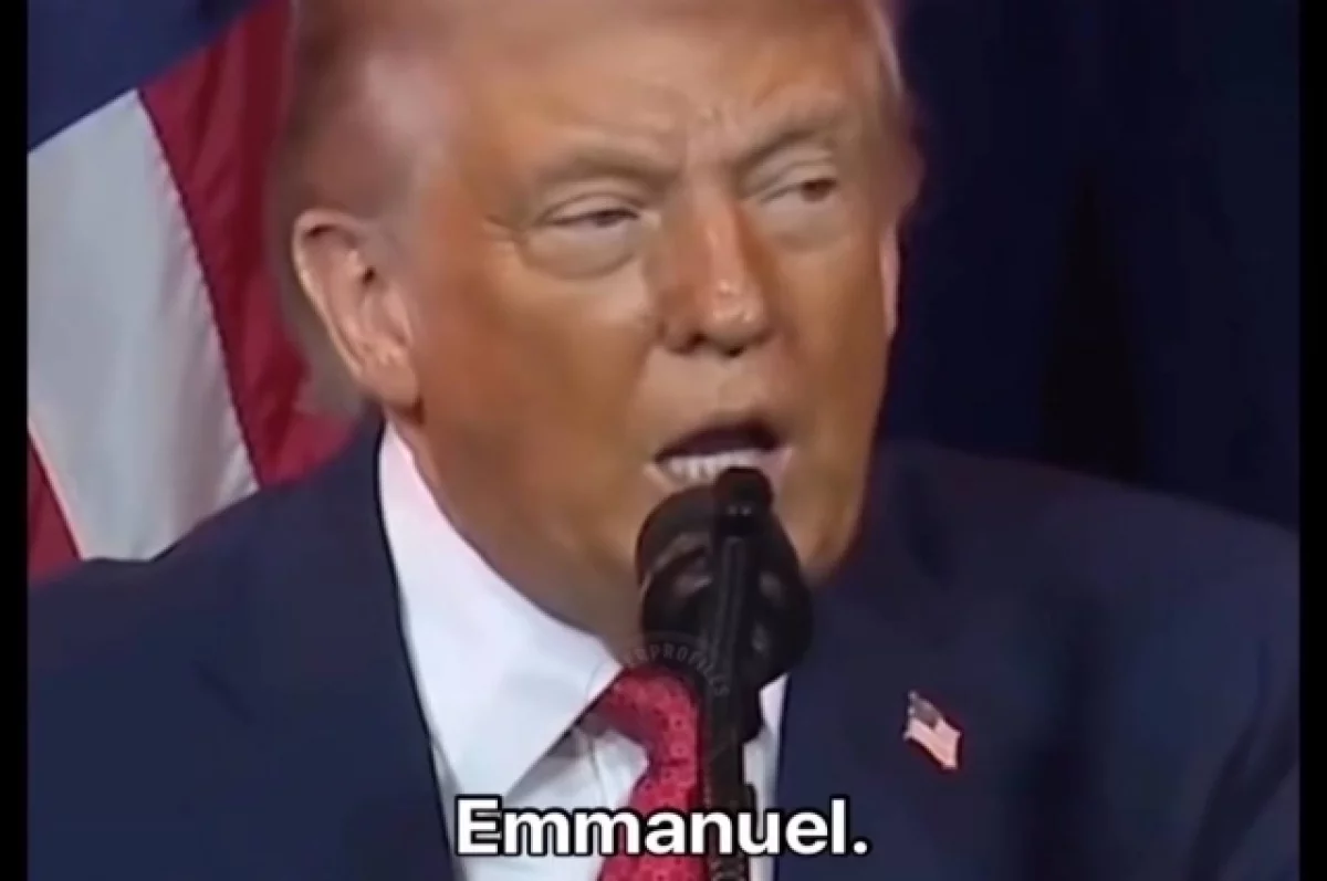 На кадрах – Трамп выступает с трибуны и говорит о президенте республики. Сначала он произносит: «Макрон», затем останавливается и пытается повторить фамилию с акцентом, после чего заявляет, что любит французский акцент, потом несколько раз словно с придыханием говорит: «Эммануэль…Эммануэль…».