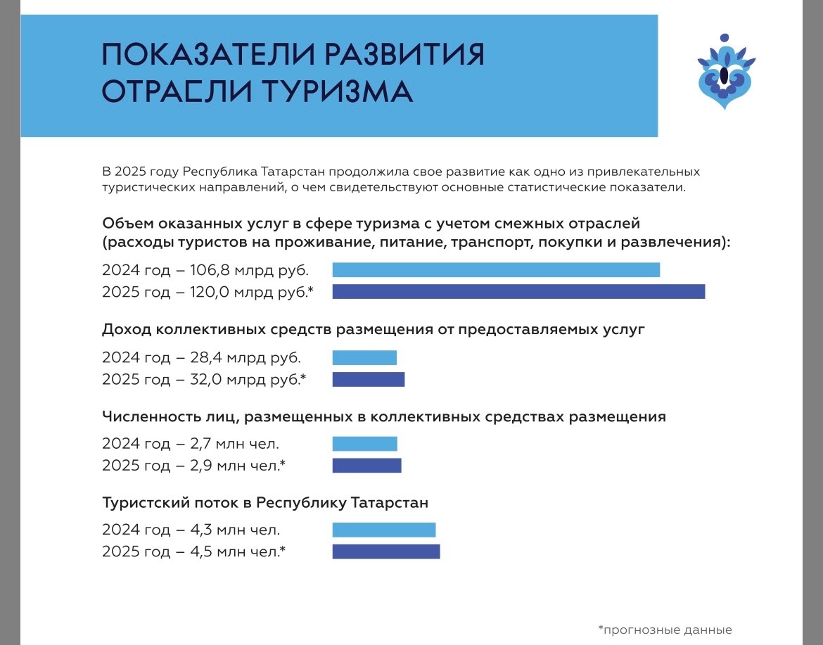 Если в 2024 году в республике побывали 4,3 миллиона человек, то в 2025-м — уже 4,5 миллиона. Кроме того, выросли и траты: в прошлом году туристы потратили на проживание, питание, транспорт и развлечения в республике 120 миллиардов рублей (в 2024-м — 106,8 миллиарда рублей).