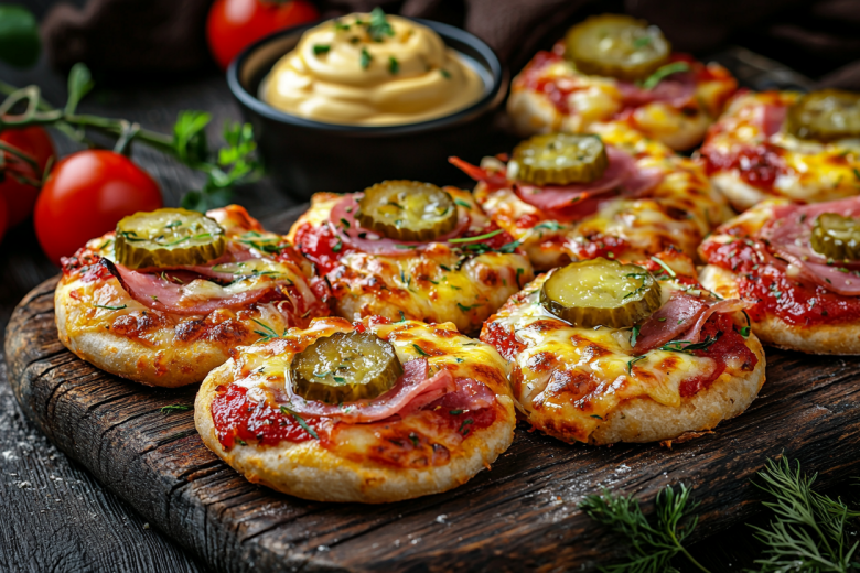 Мини-пиццы на жидком тесте — это гениально простое блюдо, которое готовится без замеса и раскатки. Густое тесто, смешанное ложкой, выкладывается на пергамент небольшими порциями, а сверху — начинка.