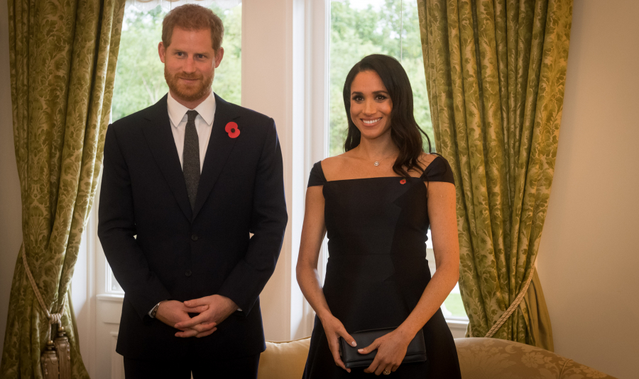 Герцогиня Сассекская предпочла элегантный деловой стиль, выбрав темно-синий джемпер и облегающие брюки в тон. Образ был дополнен чёрными замшевыми ботильонами на шпильке. В качестве аксессуаров Меган надела минималистичные серьги, ожерелье Cartier, браслет и своё знаменитое помолвочное кольцо с тремя бриллиантами. Она сделала сдержанный макияж с акцентом на глазах и оставила волосы распущенными. Принц Гарри, известный своим отходом от королевских традиций, выбрал повседневный наряд, состоящий из серой бейсболки, чёрной рубашки, темно-серых джинсов и кроссовок.