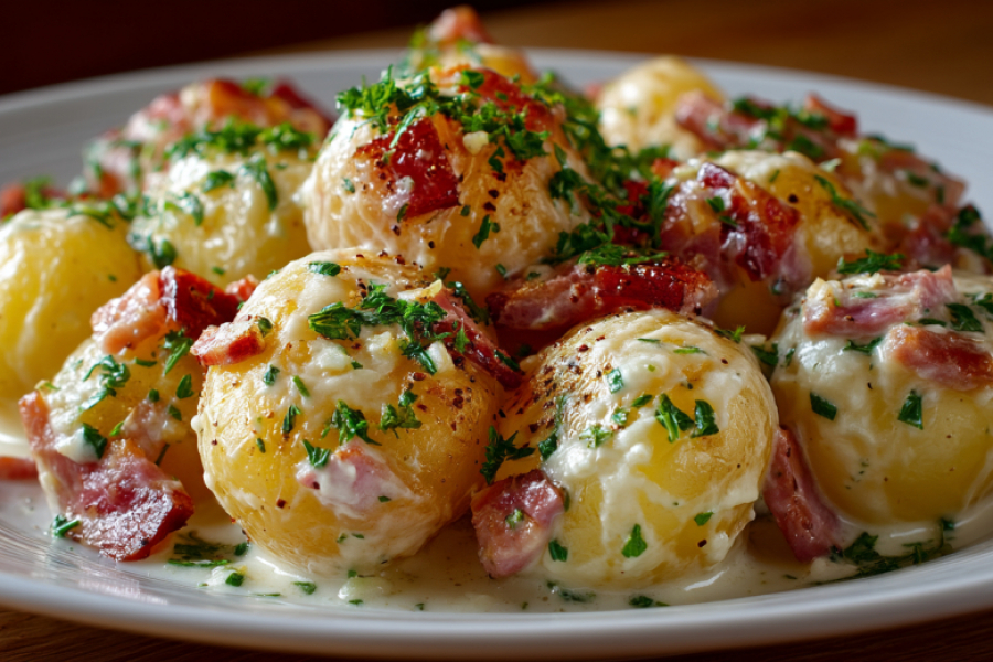 Это гениально простое и невероятно вкусное блюдо, идеальное для семейного ужина или праздничного стола. Получается обалденная вкуснятина: картофель сохраняет форму, но становится мягким и пропитанным сливками, ветчина добавляет соленую нотку и аппетитную корочку, а лимонная цедра и чеснок делают вкус ярким и свежим.