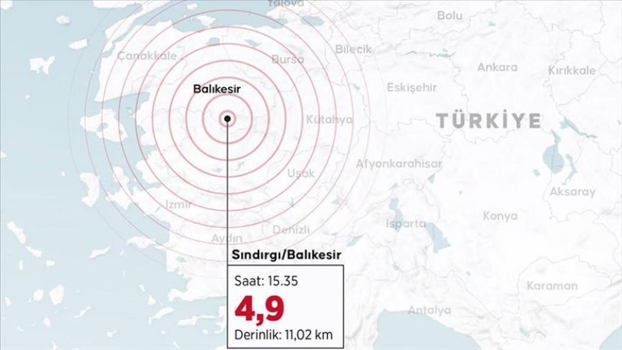 В районе Сындыргы в турецкой провинции Балыкесир произошло землетрясение магнитудой 4,9.