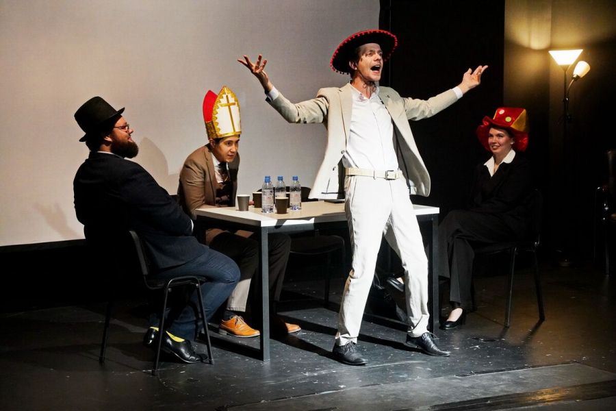 Материал в чем-то даже киношный. Сцена превращается в фокус-комнату, а портал в ад большого бизнеса открывает самое нестандартное и пугающее собеседование: четыре кандидата-противника, никого из эйчар, и только металлический голос за кадром, объявляющий очередное задание. Это метод Гронхольма — стресс-тест, который используют крупные компании, чтобы отсеять слабых кандидатов. Конечно, доведенный до абсурда.