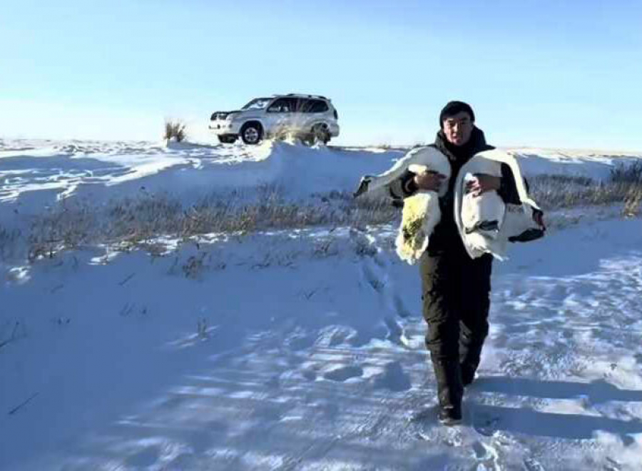 А дело было так. Бауыржан с отцом Жылкыбаем ЖАКУПОВЫМ отправился за солью для коров. На обратном пути, проезжая мимо озера, мужчины заметили лебедя. Это было странно, поскольку уже вечерело и стоял крепкий мороз. Решили подойти поближе, чтобы снять на видео птицу. Тогда и стало понятно, что лебедь не может взлететь, у него просто не хватает сил. Но и в руки он не давался.