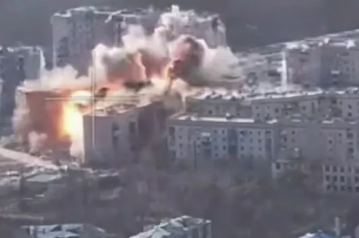 Судя по опубликованному видео, мощный взрыв уничтожил пункт временной дислокации ВСУ, выявленный в многоэтажной застройке.
