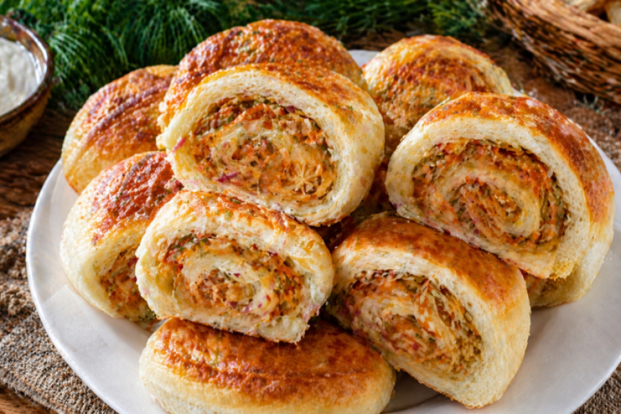 Забыла о классической лепке: теперь просто сворачиваю тесто с начинкой рулетиком — получается совсем другой формат пирожков, и выглядит эффектно даже на столе.
